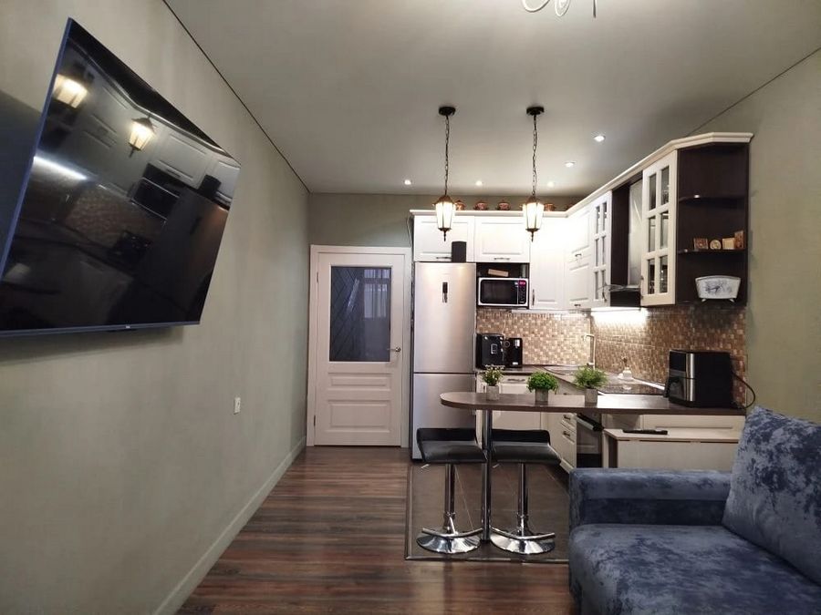 Продается 2-комнатная квартира-студия, 41,1 м? (современный дом, 2017 г.) Предлагаем вашему вниманию просторную квартиру в современном кирпичном доме, сданном в эксплуатацию в 2017 году. Дом содержится в идеальном техническом состоянии, оборудован пассажирским и грузовым лифтами. Характеристики: · Площадь: 41,1 м? (общая). · Этаж: 2 из 13 (удобно для тех, кто предпочитает не зависеть от лифта). · Высота потолков: 2,8 м (создает ощущение простора и воздуха). · Планировка: Удачный формат «студии» — объединенная гостиная с кухонной зоной плюс отдельная изолированная спальня (гарантия приватности). · Окна: Панорамные, выходят на разные стороны. В квартире всегда светло в течение всего дня. · Ремонт: Отличное состояние, выполнен качественный ремонт. Можно заезжать сразу после покупки. · Бонус: В стоимость входит практичный кухонный гарнитур. Инфраструктура и парковка: Для автовладельцев предусмотрены удобный пандус и организованная многоуровневая парковка на территории. Рядом с домом развитая инфраструктура: магазины, аптеки, кафе и детские сады в шаговой доступности. Транспортная доступность на высоте благодаря близости основных магистралей. Идеальный вариант для тех, кто ищет готовое современное жилье без лишних хлопот.